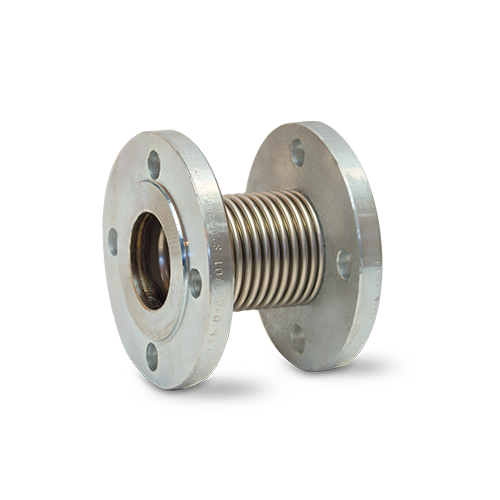 A stainless-steel axial expansion joint designed to absorb thermal expansion and contraction in piping systems. Suitable for extreme temperature ranges and compatible with flanged or welded installation.
